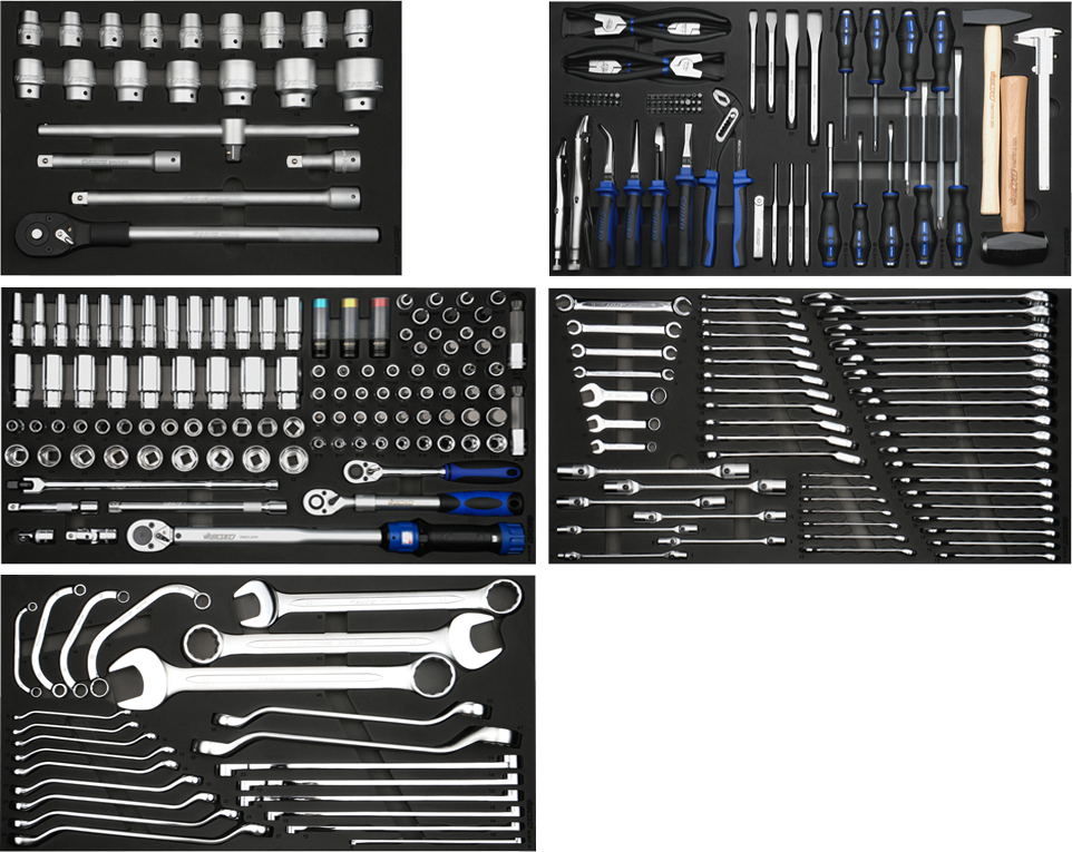 - Vlakke extra lange dubbele ringsleutel: 8 x 10 mm, 12 x 14 mm, 13 x 15 mm, 16 x 18 mm, 17 x 19 mm, 22 x 24 mm